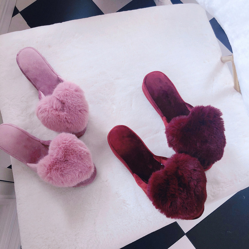甜蜜少女桃心短绒坡跟家居鞋地板拖麂皮绒底静音拖鞋冬厚底增高
