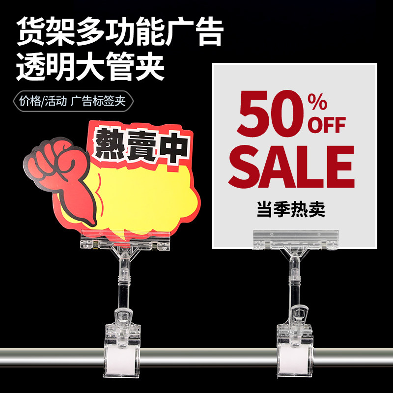 POP超市标签夹透明夹水晶夹爆炸贴夹子价格牌广告夹摆摊特价药店服装店水果店立式KT板夹展示架拇指夹双头夹