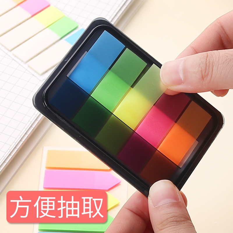 得力标记荧光膜指示页码书签彩色文件夹标签抽取式分类便利贴小条索引贴便签粘性强书贴纸塑料防水办公用标识