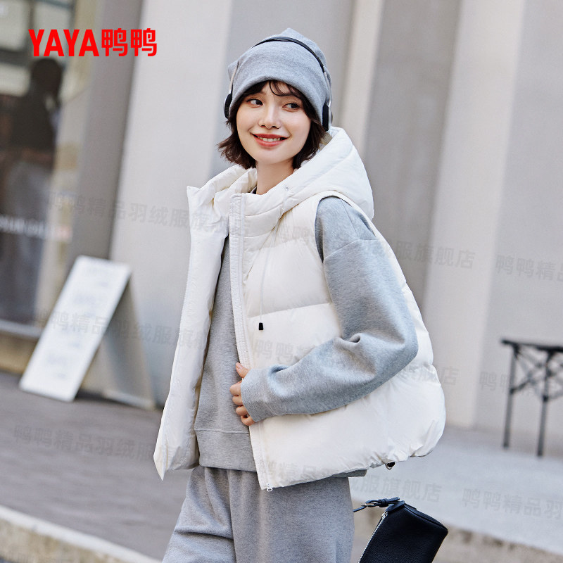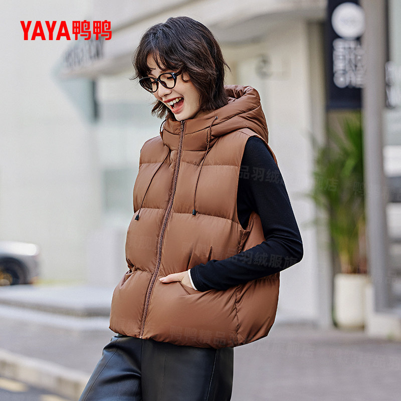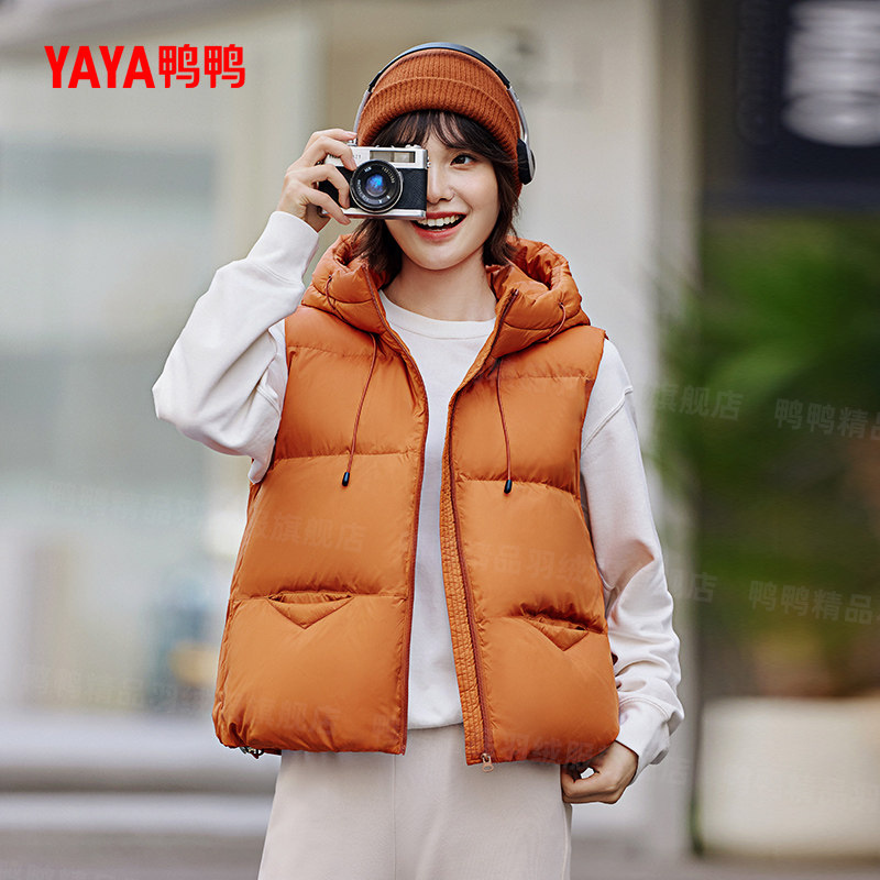 鸭鸭羽绒马甲2025年新款背心马夹短款连帽时尚宽松百搭保暖外套潮