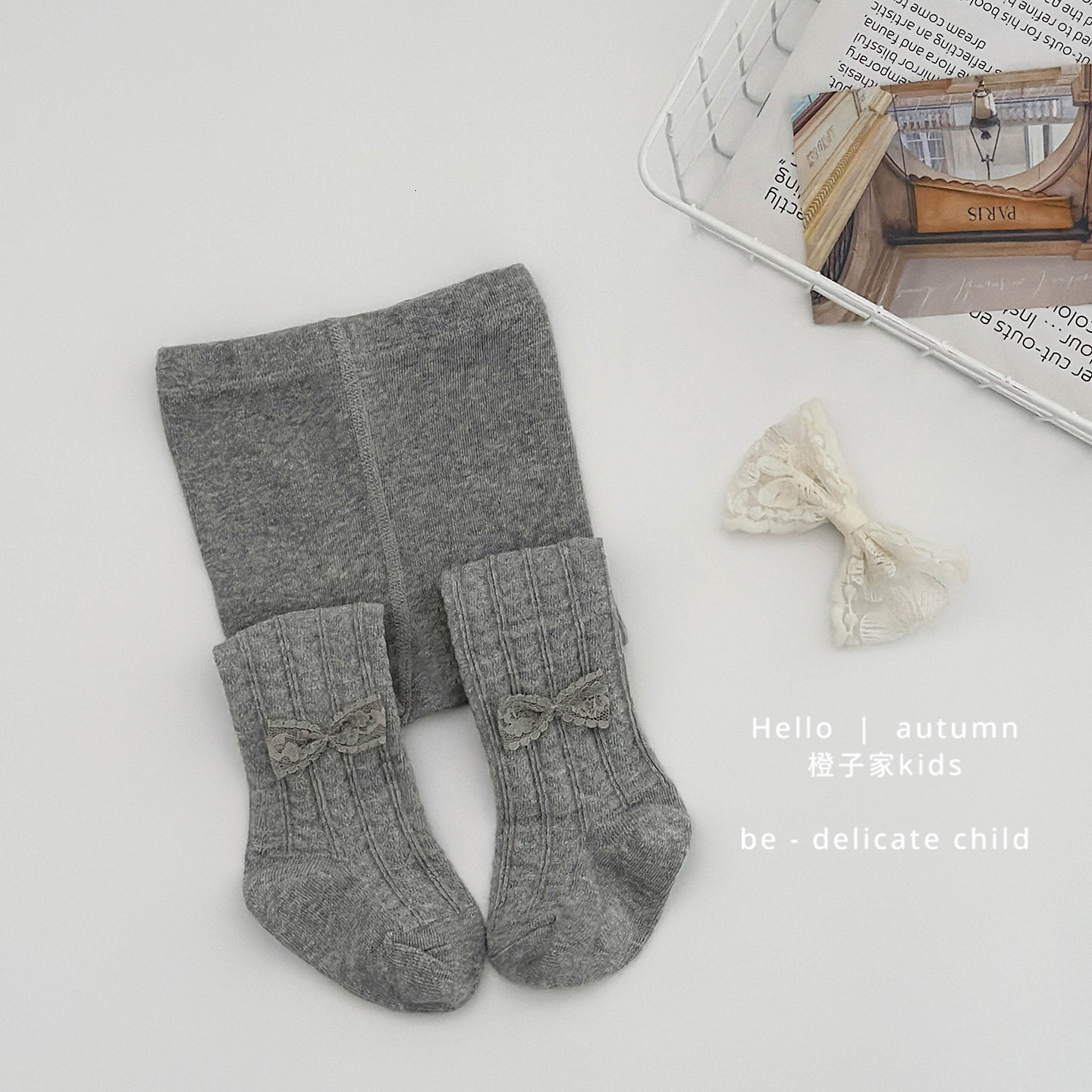 韩版蝴蝶结春秋款女宝宝打底裤纯色百搭女童连裤袜休闲婴儿可爱潮