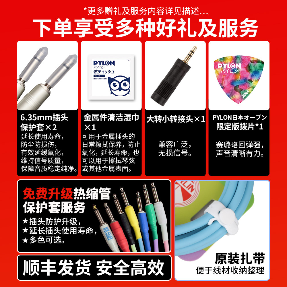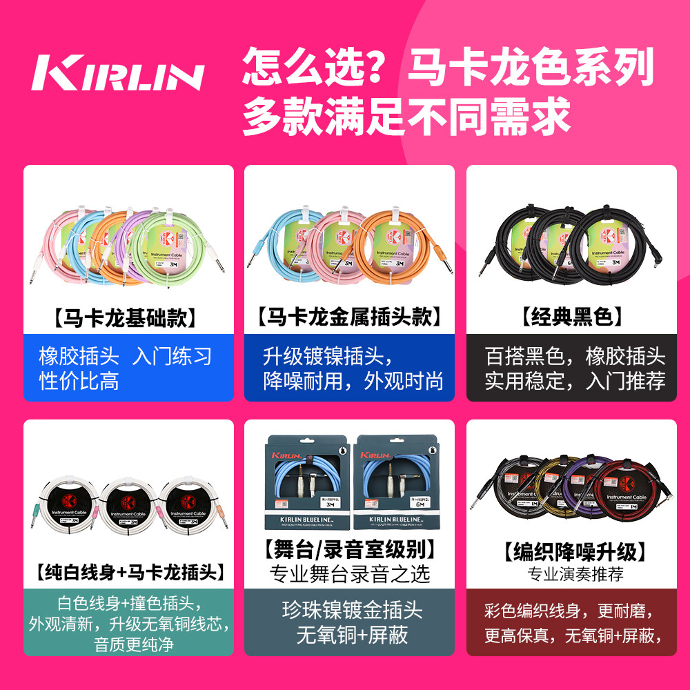 推荐理由:Kirlin科林吉他连接线 电箱木吉他贝斯乐器音频降噪线3米马克龙色
