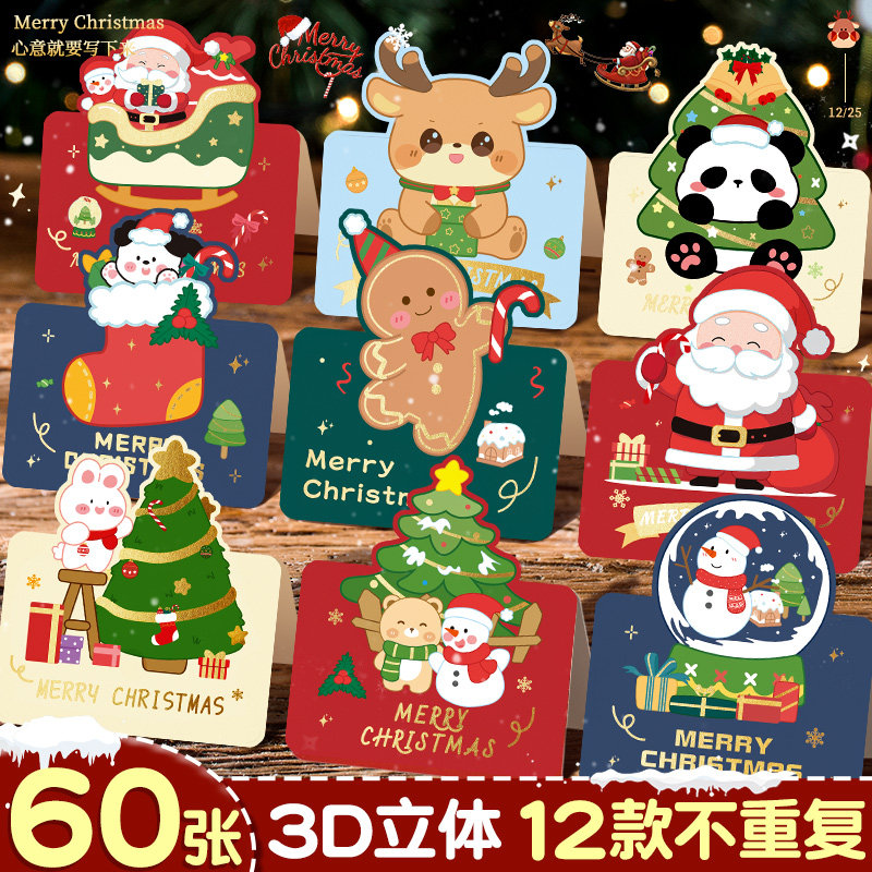 2025圣诞节贺卡感恩节快乐礼物小卡片儿童幼儿园小学生手写祝福明信片ins风可爱生日单页式卡片纸高级感C1