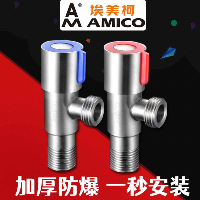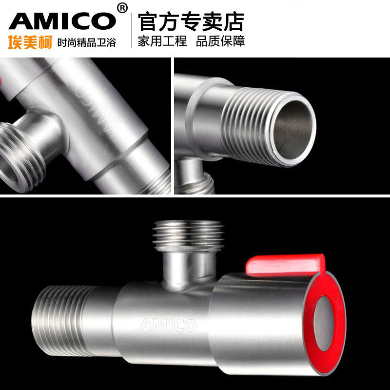埃美柯304不锈钢角阀冷热水器八字水阀门马桶水阀开关分水三角阀