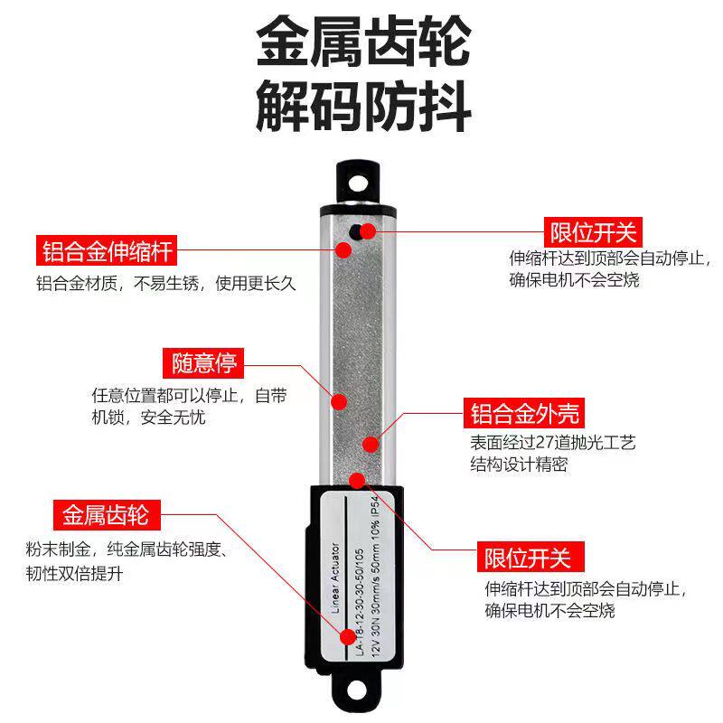 电动推杆6v12v24v直流小型伸缩杆直线往复电机迷你升降器电缸定制