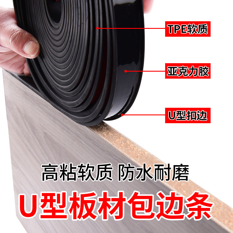推荐理由:封边条自粘木板软包边橱柜衣柜门收边收口免漆板黑色u型带胶木工