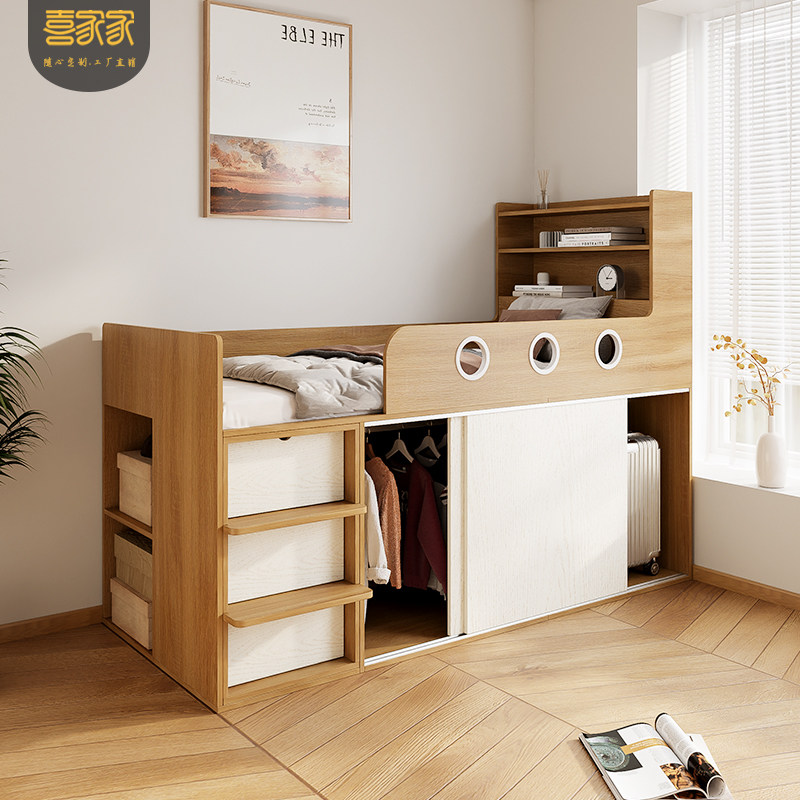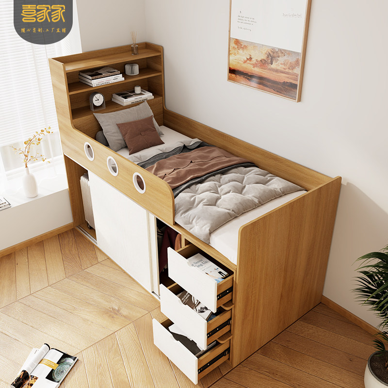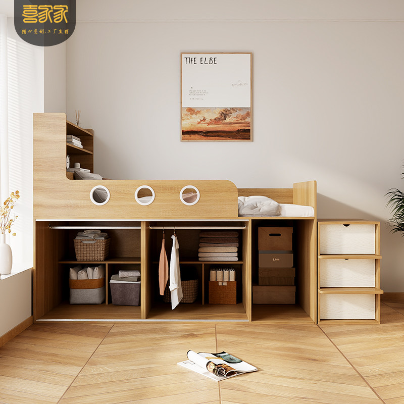 推荐理由:多功能带储物儿童榻榻米床头衣柜一体单人半高箱收纳床定制寄香港