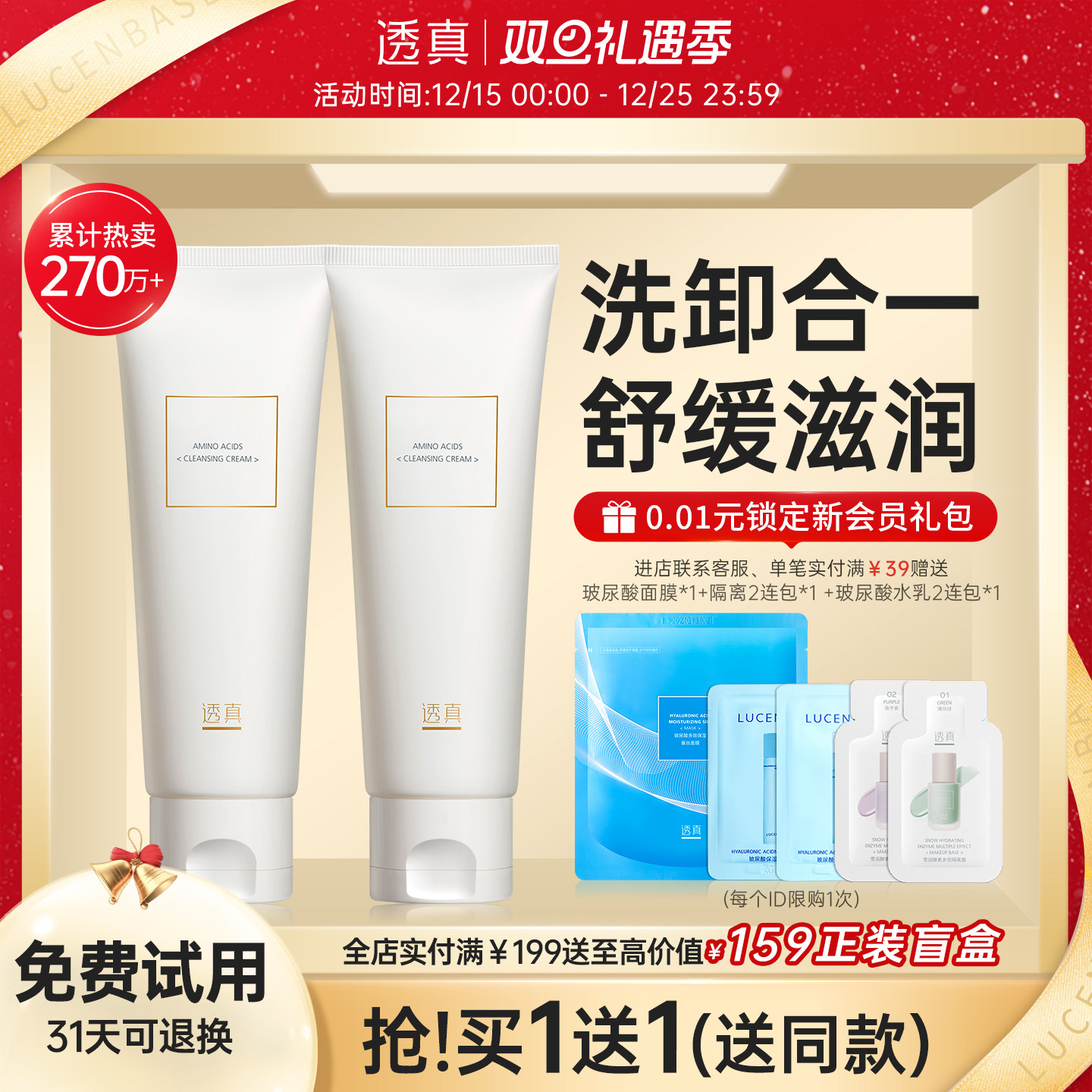 透真氨基酸洗面奶女男干皮祛痘毛囊清洁膏卸妆收缩毛孔美白洁面乳