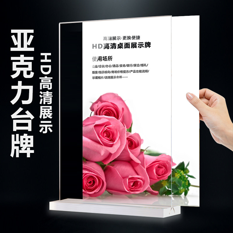 T型亚克力双面透明台牌A4广告桌牌台卡价目表牌酒水牌展示牌餐牌
