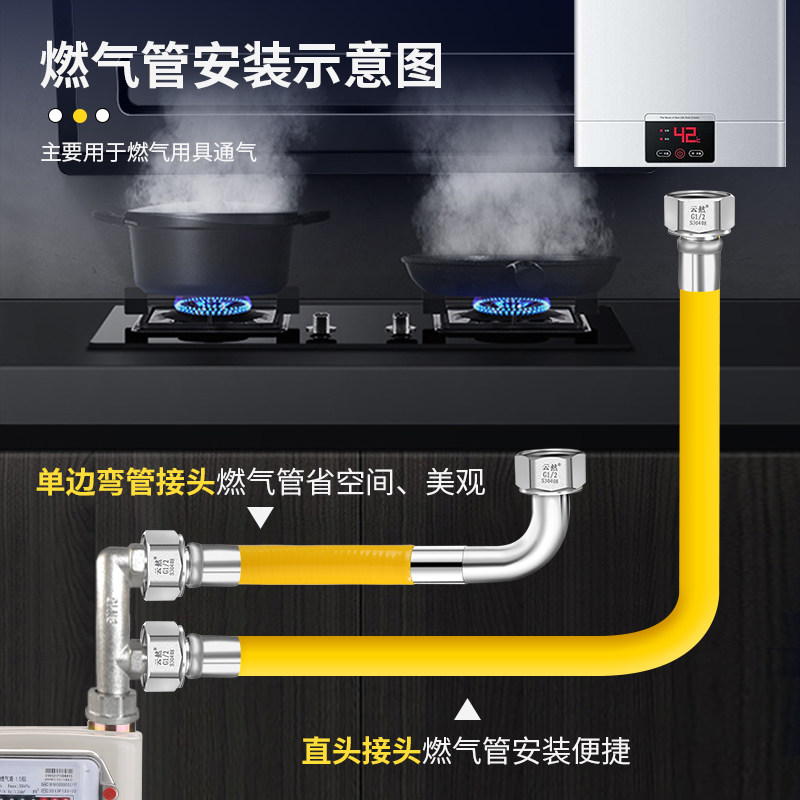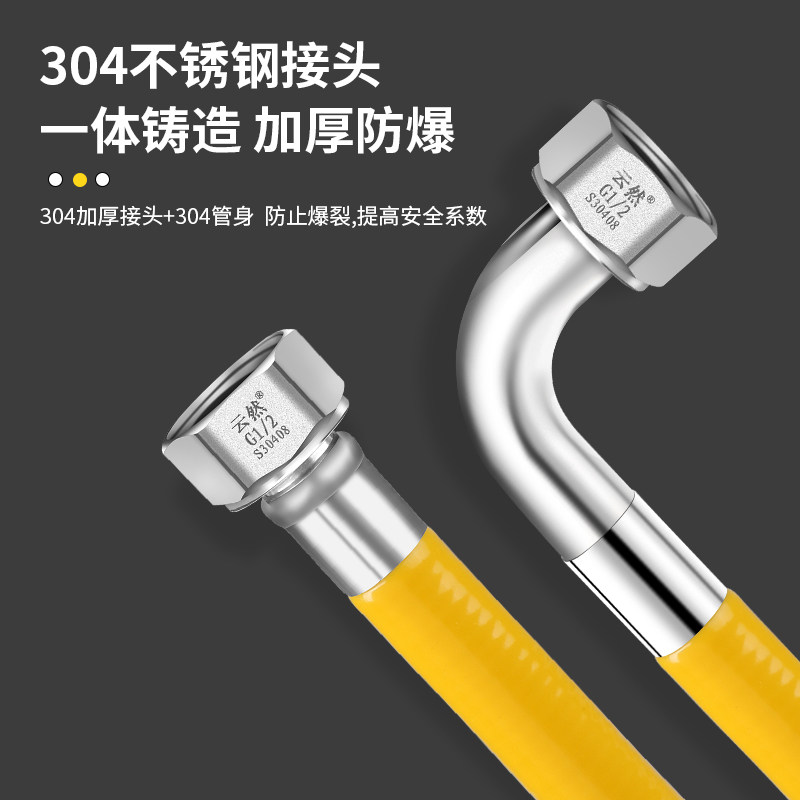 推荐理由:304不锈钢燃气管加厚一体防帽脱落带弯头款