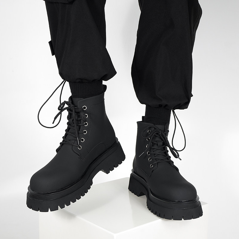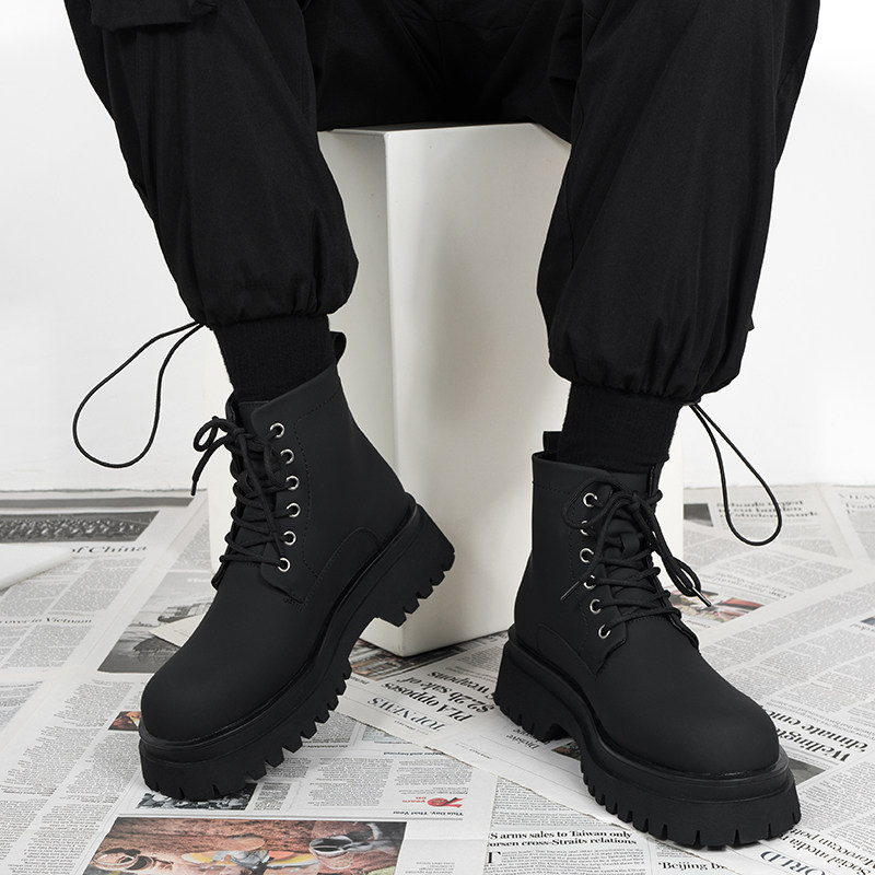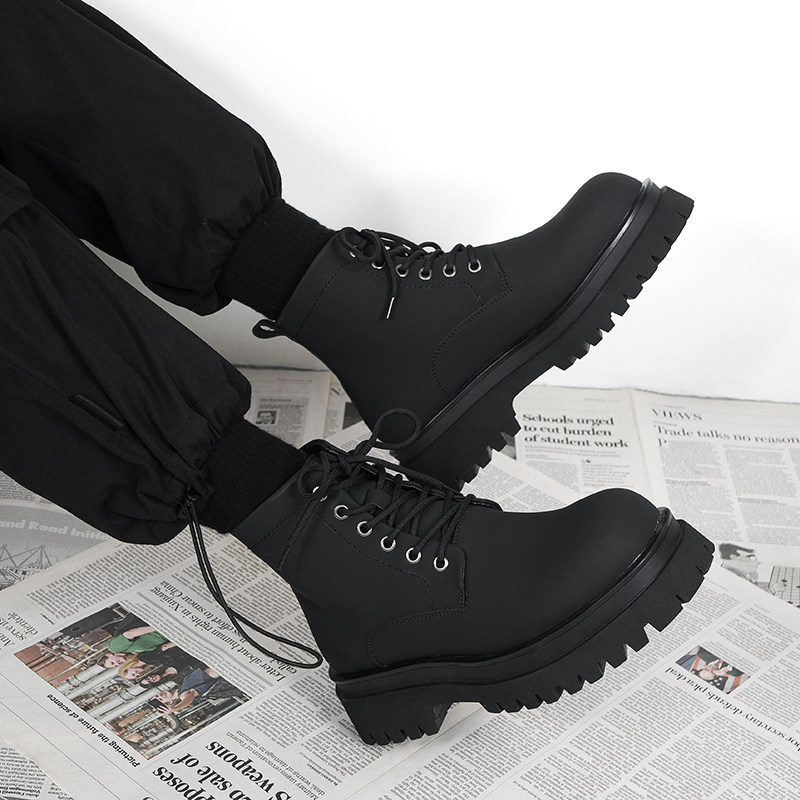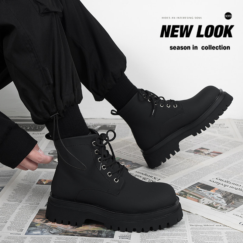 马丁靴男款新款秋冬季英伦风高帮皮鞋厚底增高黑色中帮男生皮靴子