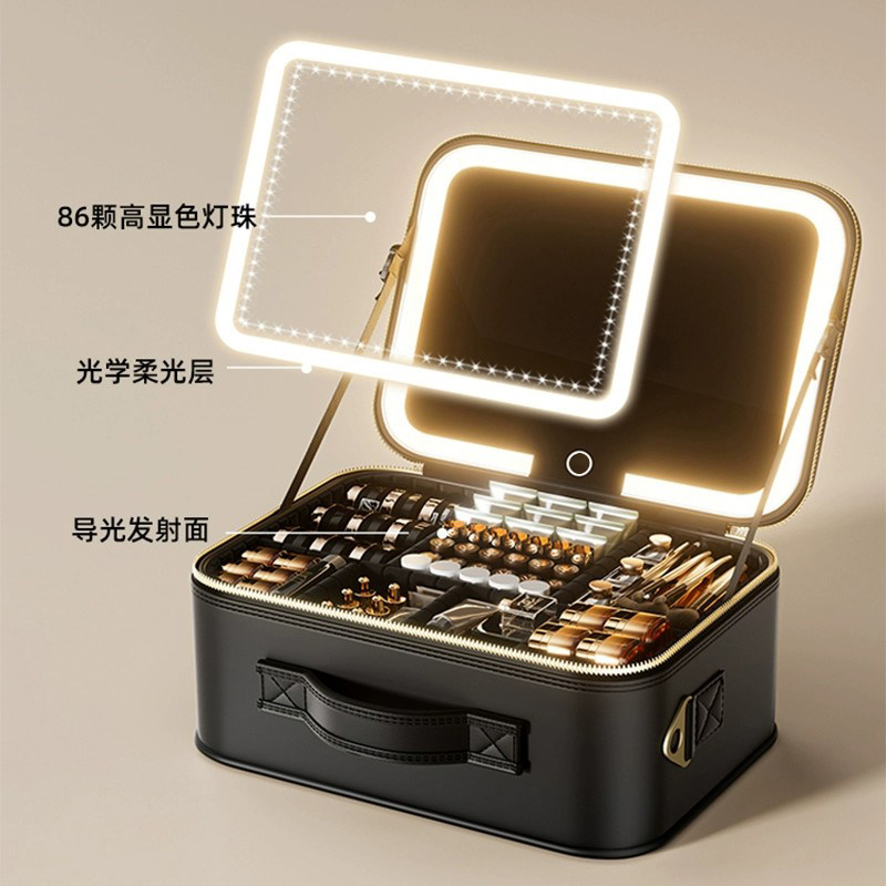 高级LED带镜子防水化妆包女旅行大容量化妆刷便携分区手提化妆箱