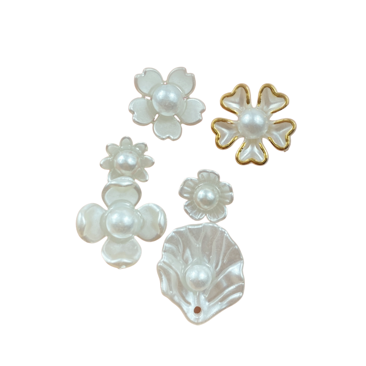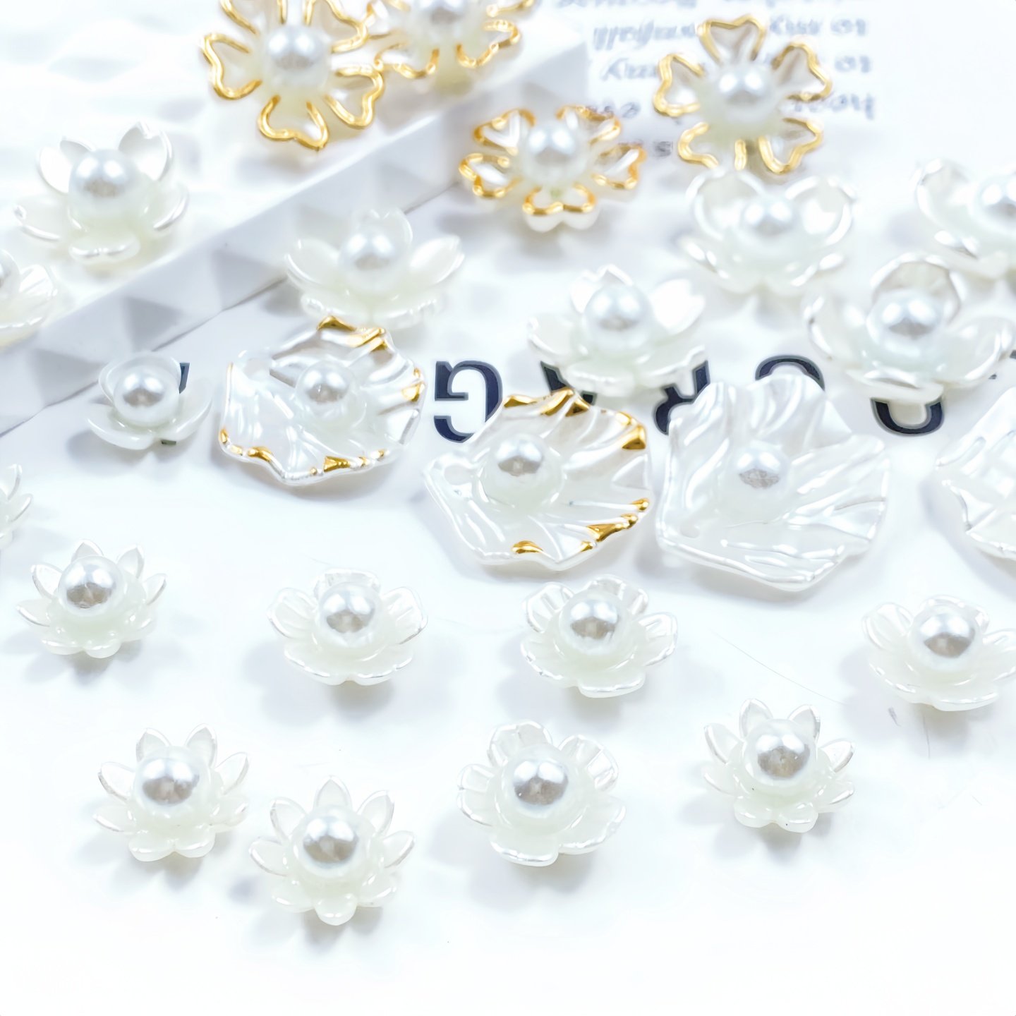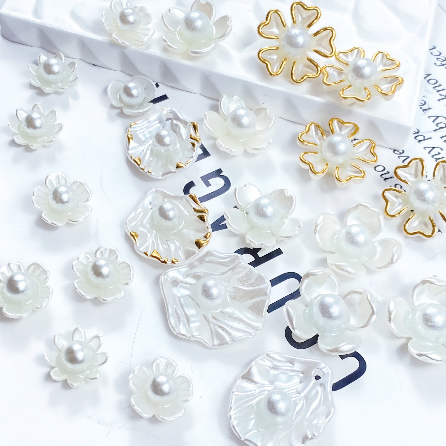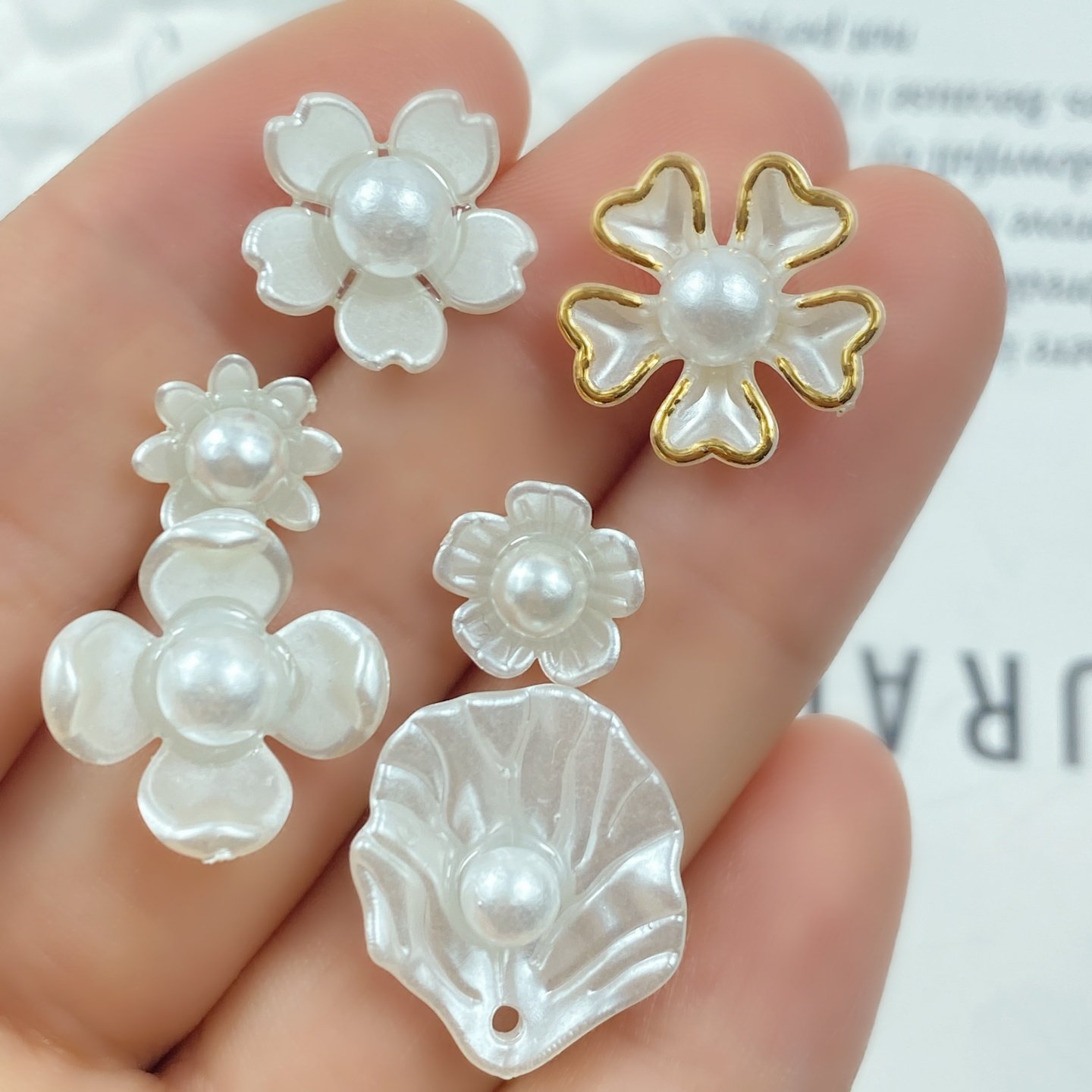 10个仿珍珠花朵带珍珠花心DIY发簪发卡耳钉等饰品滴胶手机壳配件