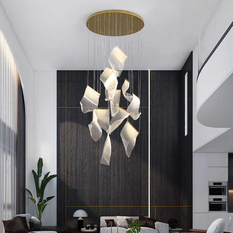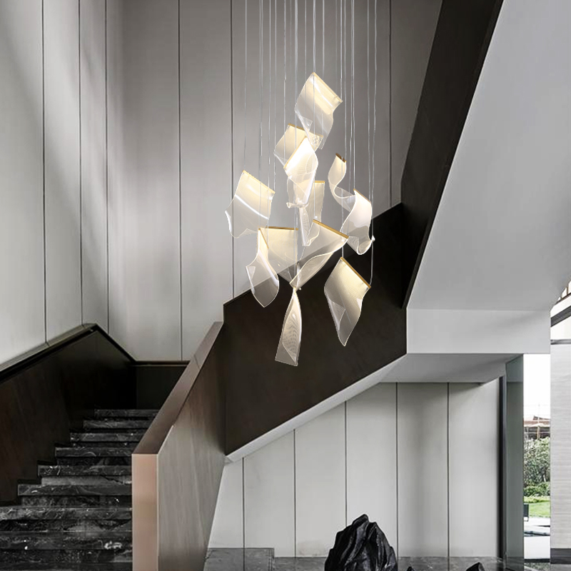 现代简约中空挑空别墅复式楼客厅大吊灯轻奢个性餐厅创意楼梯间灯