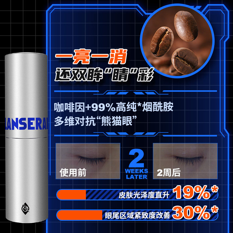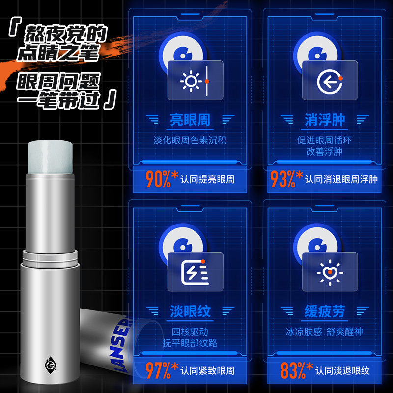 推荐理由:蓝系眼部精华棒护肤品咖啡因精华眼霜保湿抗皱熬夜赋能男生专用正