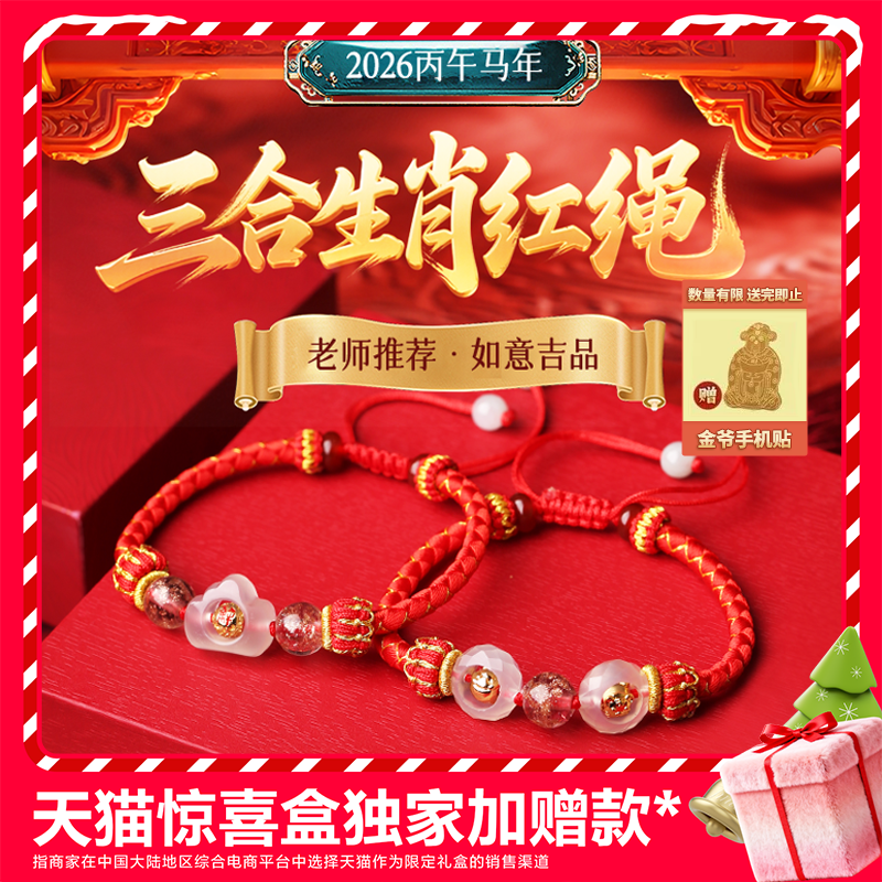 天猫惊喜盒丨灵机麦玲玲2026三合生肖红绳属马本命年手绳太岁手链