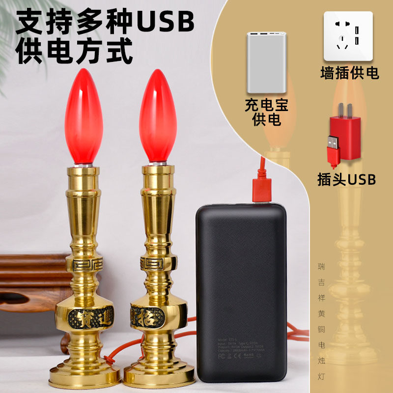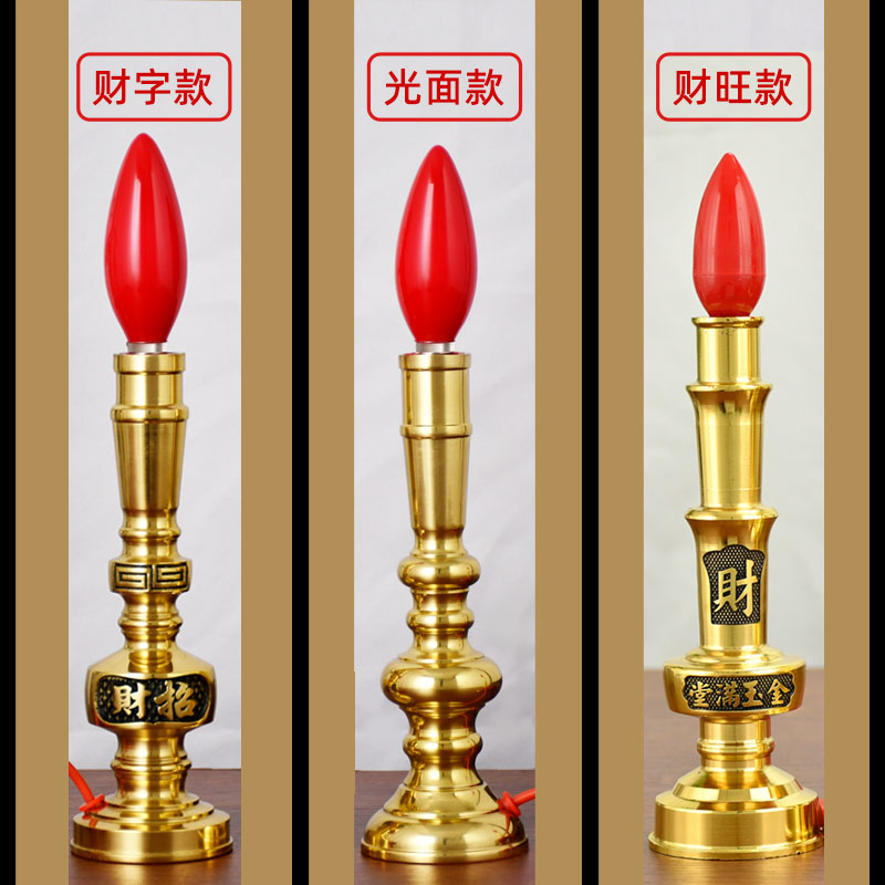 纯铜招财蜡烛灯LED长明供灯佛前神台烛台家用供奉供佛电子财神灯