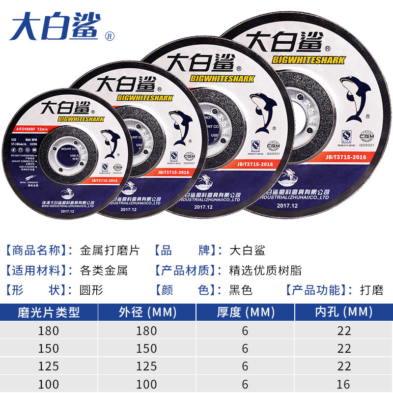 推荐理由:大白鲨角磨机砂轮片100*6树脂打磨片125磨光片150角磨片180抛光片