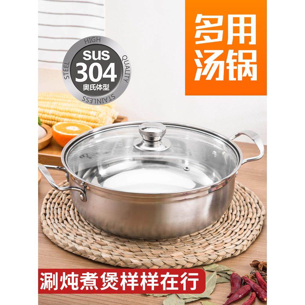 304不锈钢汤锅火锅家用商用刷火锅煲汤煮面锅燃气电磁炉通用锅具