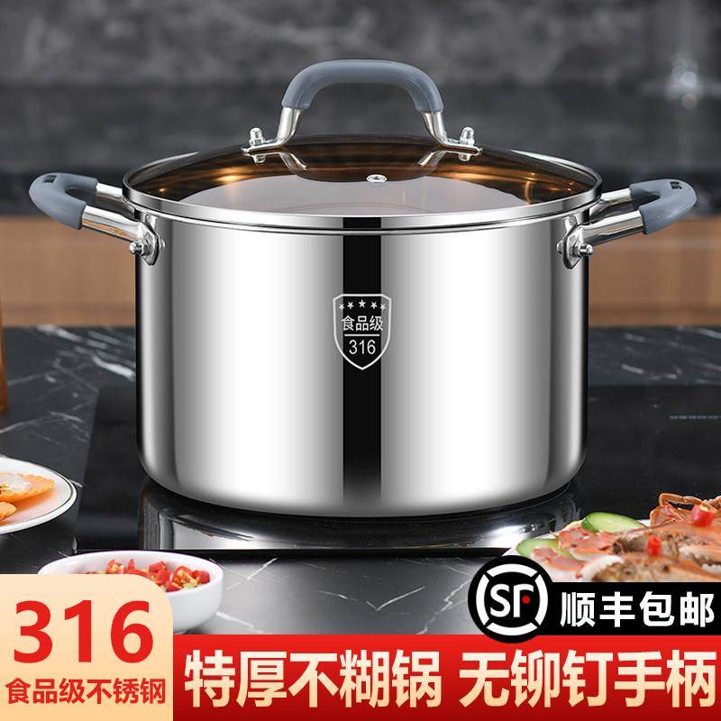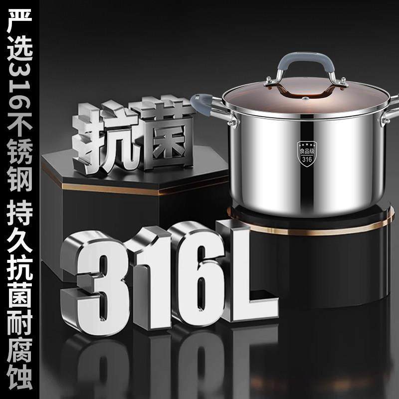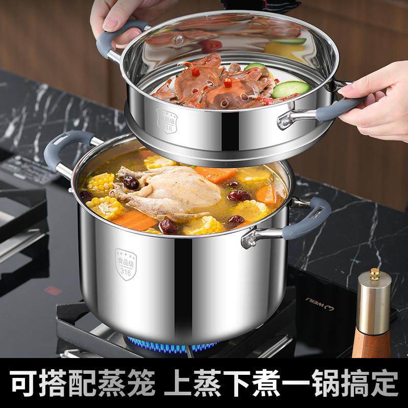 汤锅316不锈钢煮锅家用特厚电磁炉熬粥炖汤煮面 面热馒头蒸锅燃气
