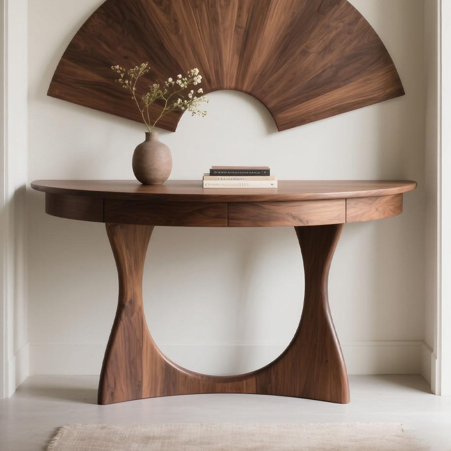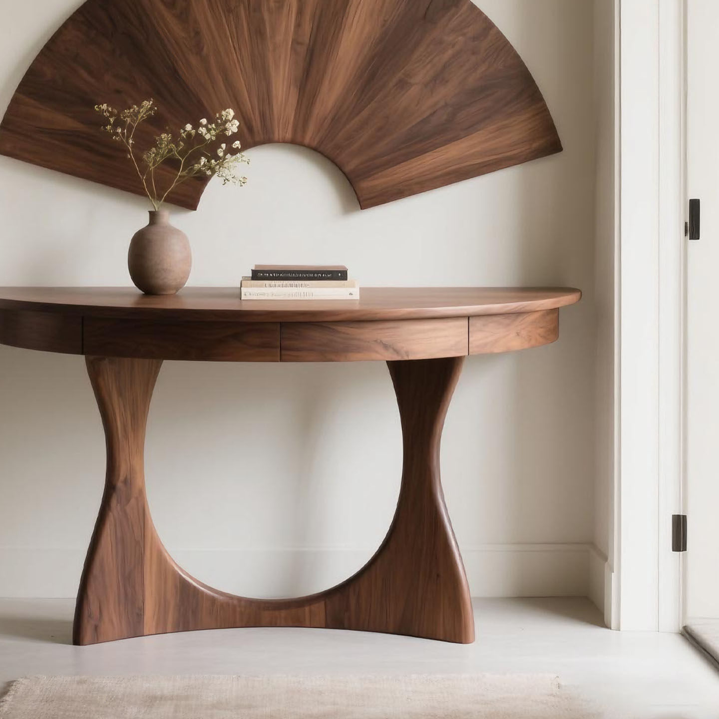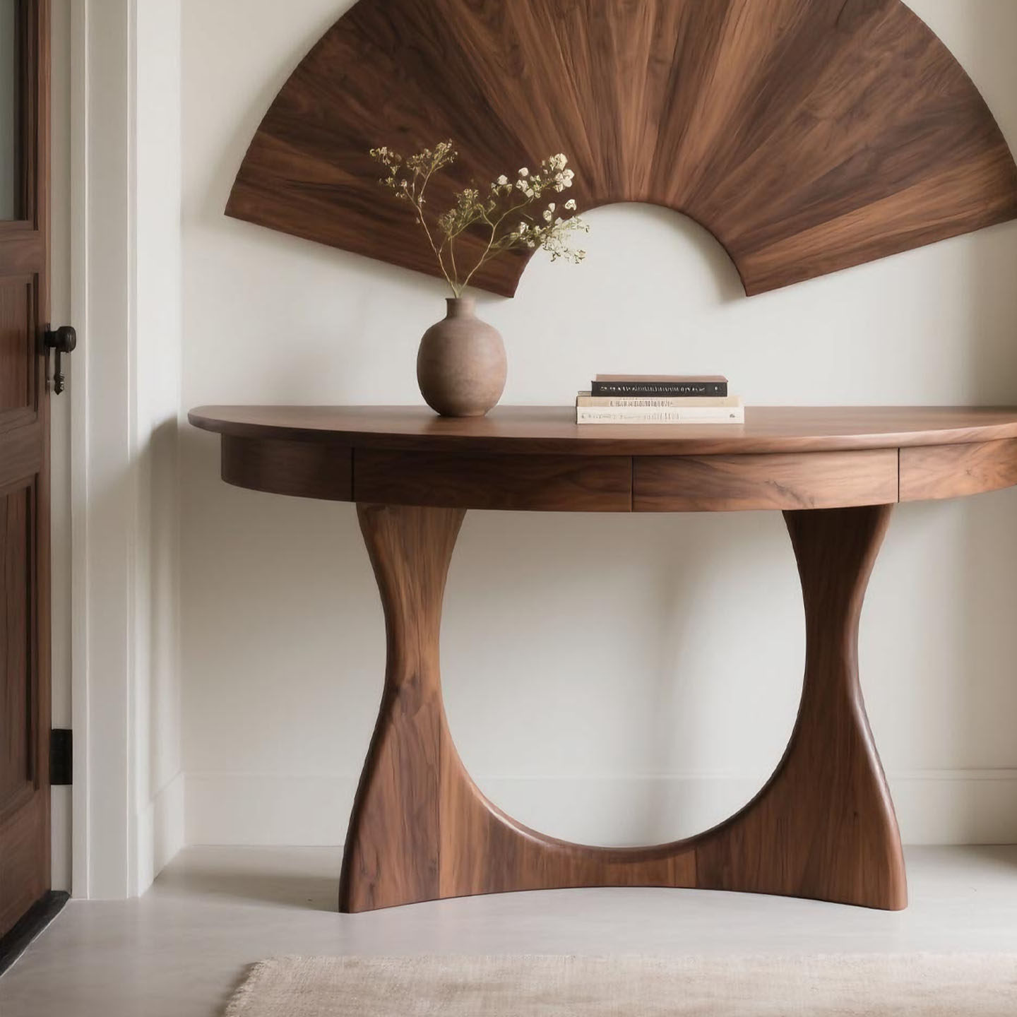 推荐理由:新中式北美黑胡桃木半圆玄关桌宋式美学极简端景台客厅实木玄关柜