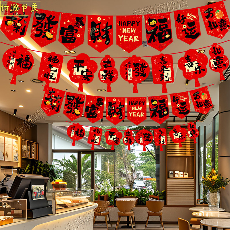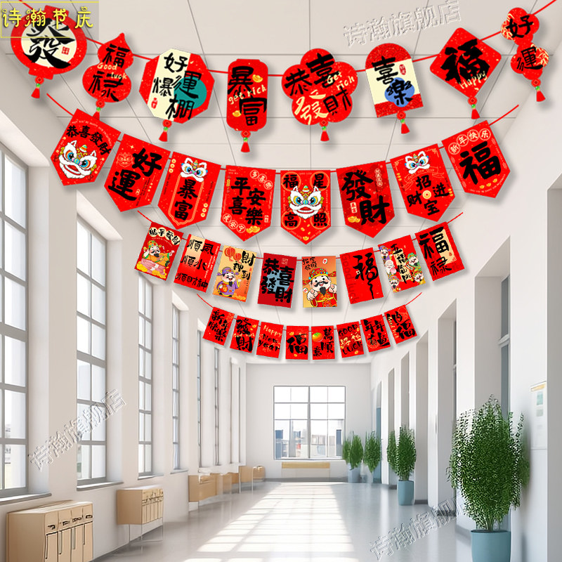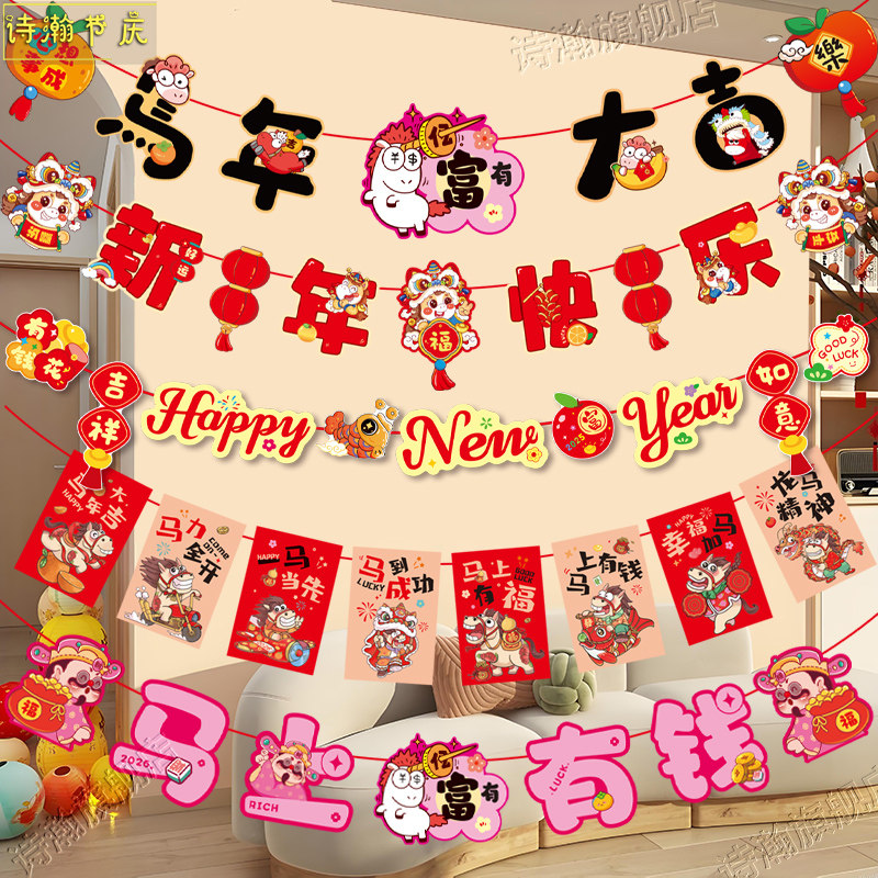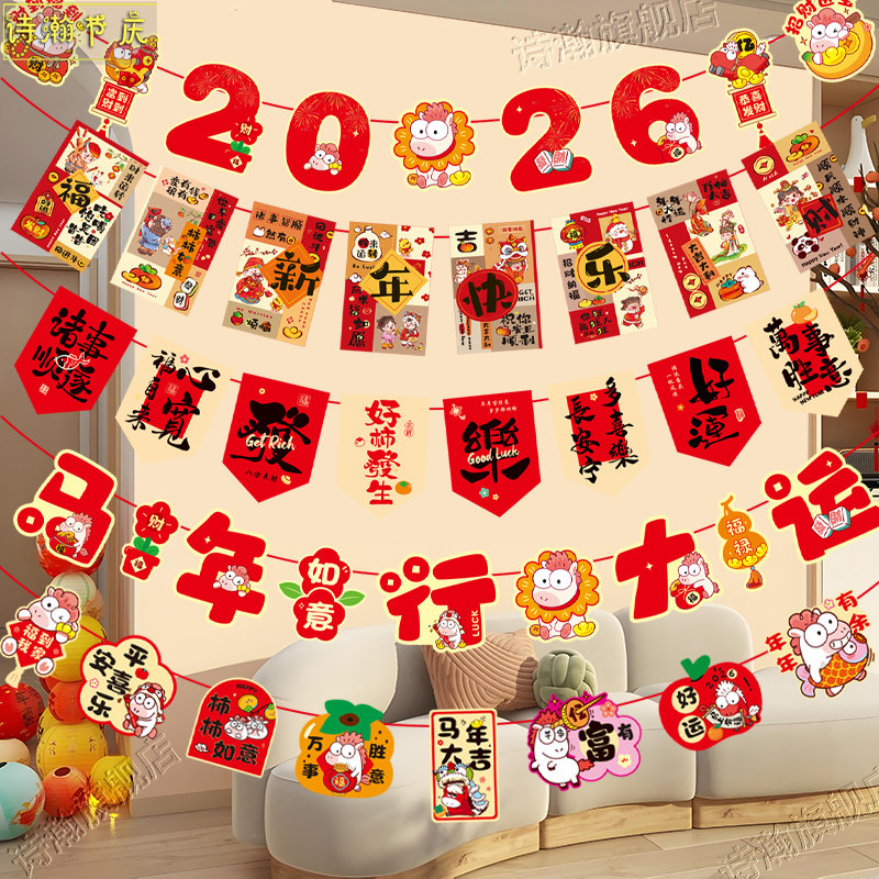 新年装饰品拉旗挂件贺年吊挂饰2026马年拉花春节过年快乐氛围布置
