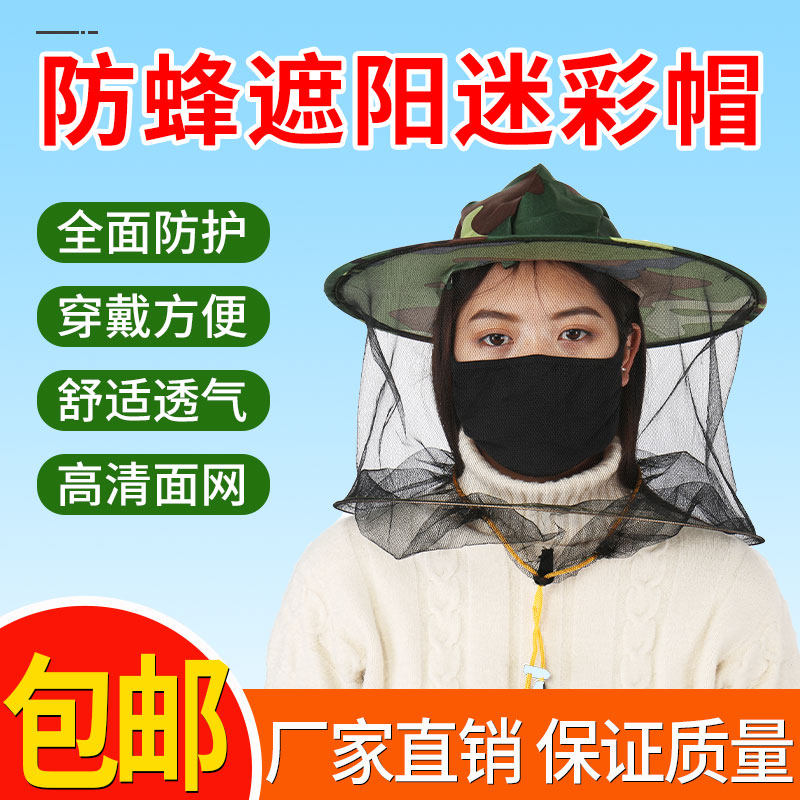防蜂帽养蜂帽蜜蜂防护帽蜂衣帽面罩蚊虫垂钓帽食定众生蜂具包邮