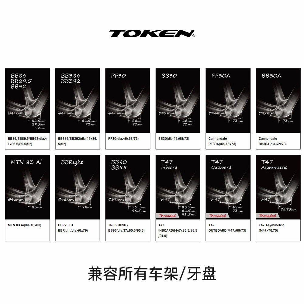 TOKEN Ninja拓肯中轴 钢珠轴承bsa pf30 bb86 山地公路车螺纹压入