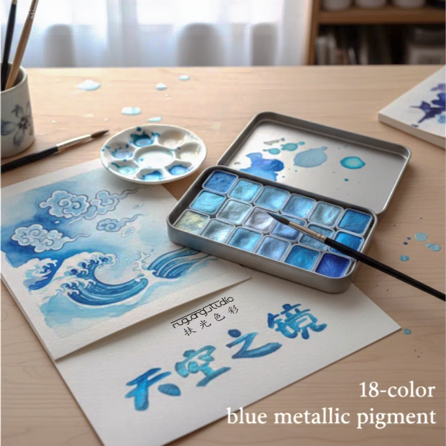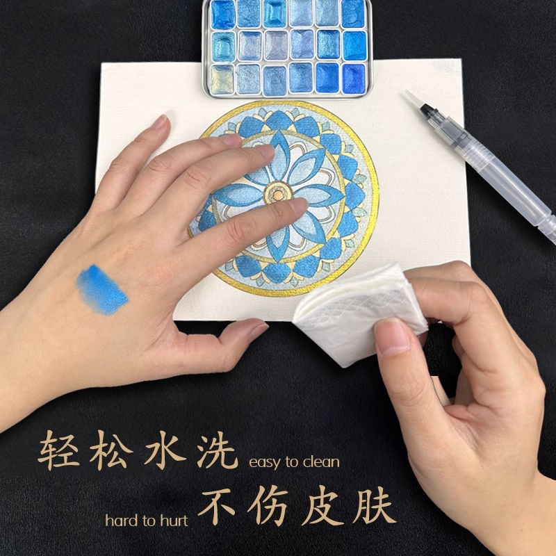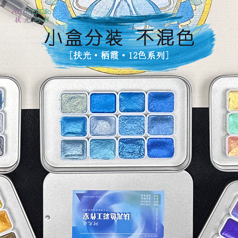 推荐理由:固体珠光水彩颜料水彩画套装全套不透明小盒初中生专用分装迷你画板迷你画画本便携画画国画水粉美术生专用