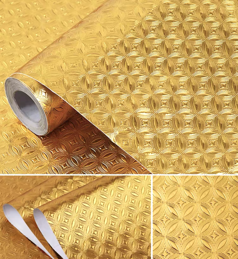 推荐理由:金色龙纹自粘墙纸金色贴纸金箔壁纸黄色土豪金防水不干胶佛堂装饰