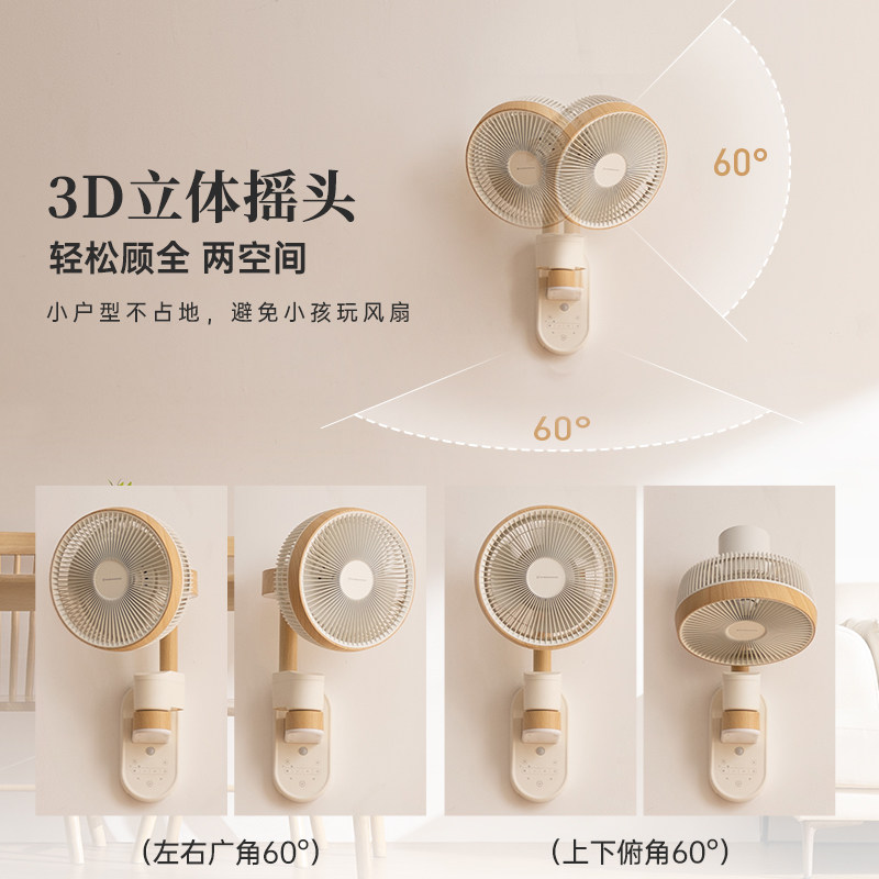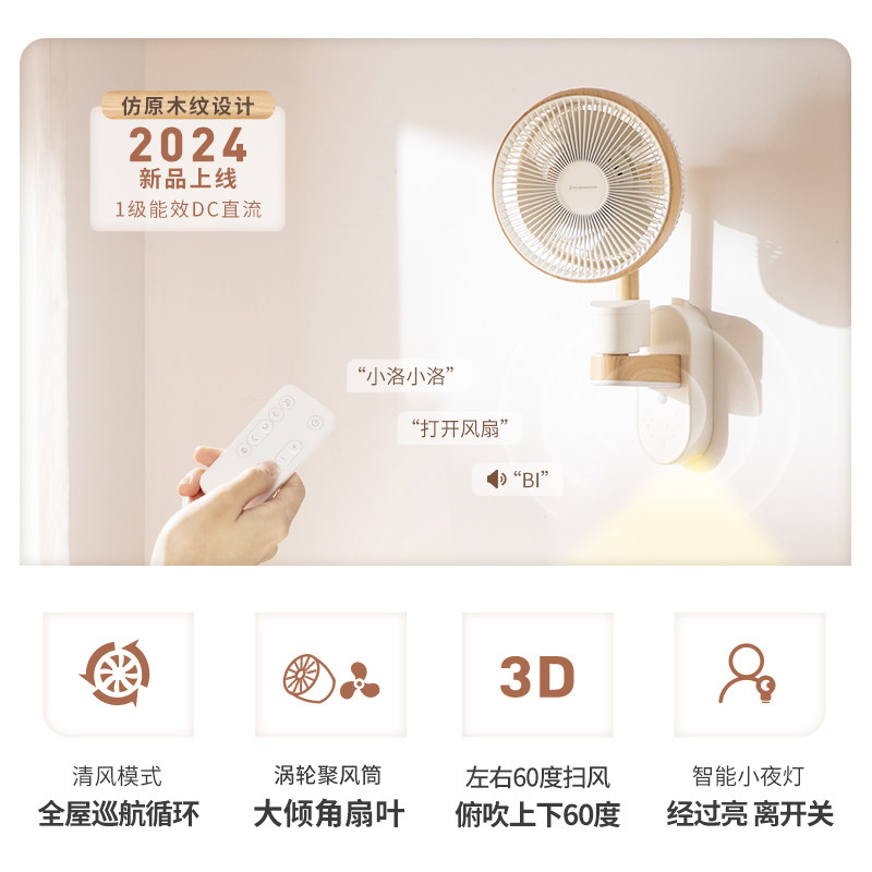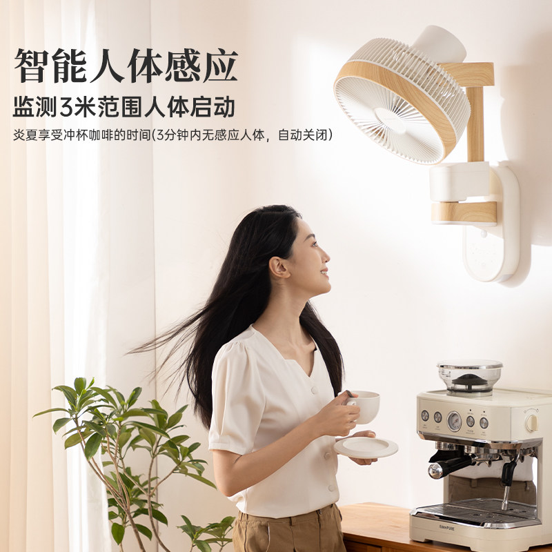 推荐理由:洛宾汉木纹壁挂空气循环扇语音家用静音小夜灯人感壁扇摇头电风扇