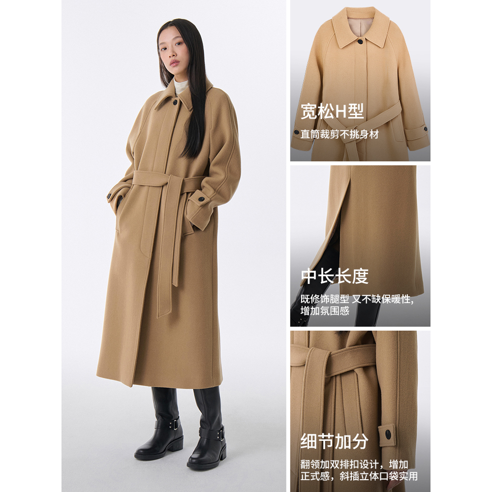 【专柜正版】高端双面羊毛羊绒毛呢大衣双排扣毛呢外套时尚洋xz8