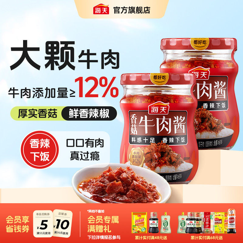 推荐理由:海天香菇牛肉酱200g拌饭酱香辣下饭拌面即食酱料炒菜夹馒头调味酱