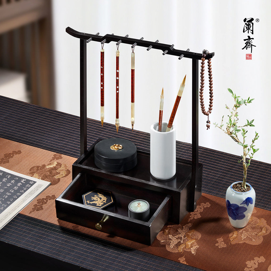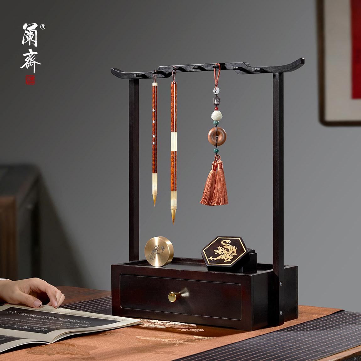 推荐理由:笔架毛笔架楠竹笔挂实木毛笔挂新中式多功能毛笔挂架收纳置物架文房四宝摆件书法收纳架挂毛笔的笔架托学生用