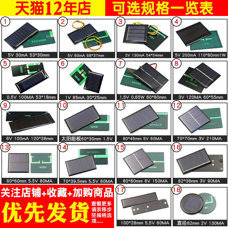 太阳能滴胶板多晶太阳能电池板12V5V6V充电池DIY光伏板发电板折叠