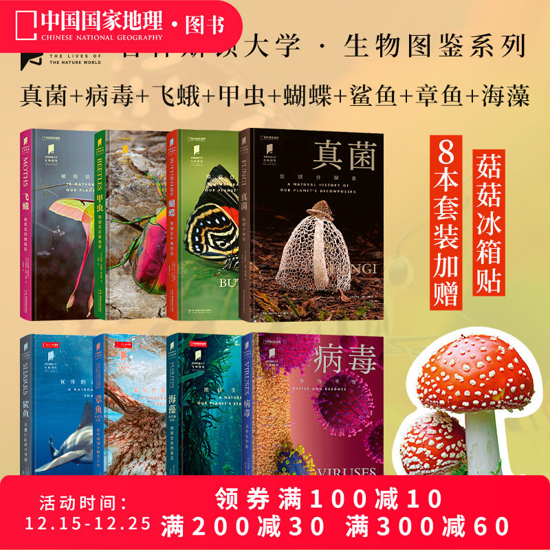 病毒真菌飞蛾甲虫蝴蝶鲨鱼章鱼海藻 共8册 中国国家地理“普林斯顿大学生物图鉴”系列科普书籍