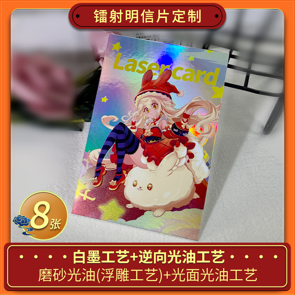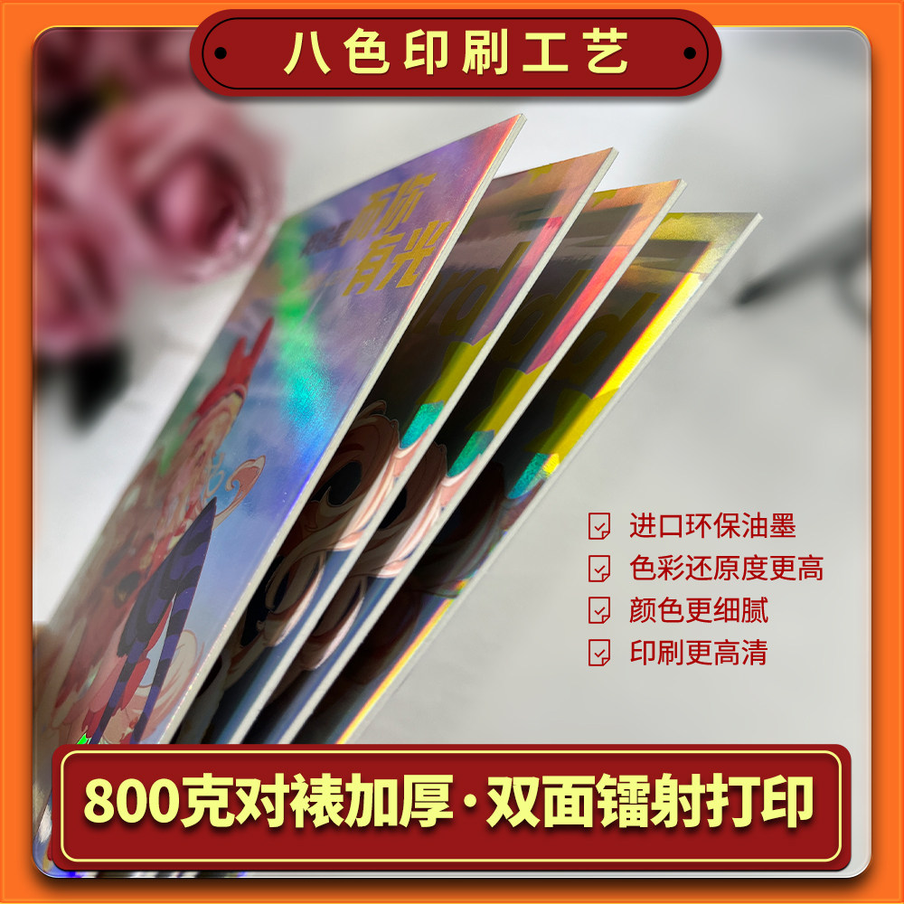 沉墨镭射卡明信片来图定制逆向镭射票打印双面镭射UV光油逆向磨砂光油自印闪卡票根可定制尺寸二次元物料书签