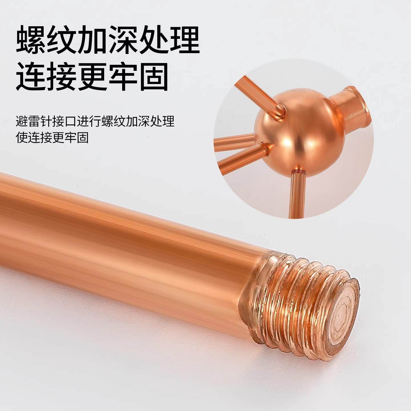 工业级全铜避雷针纯铜家用屋顶室外别墅农村自建房紫铜三叉接闪器
