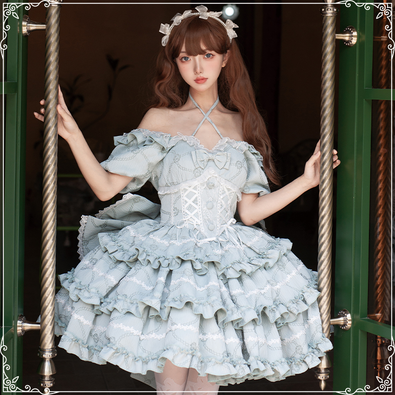 泡芙蔷薇OP洛丽塔公主裙蝴蝶结拖尾洋装连身裙豹了个猫原创lolita