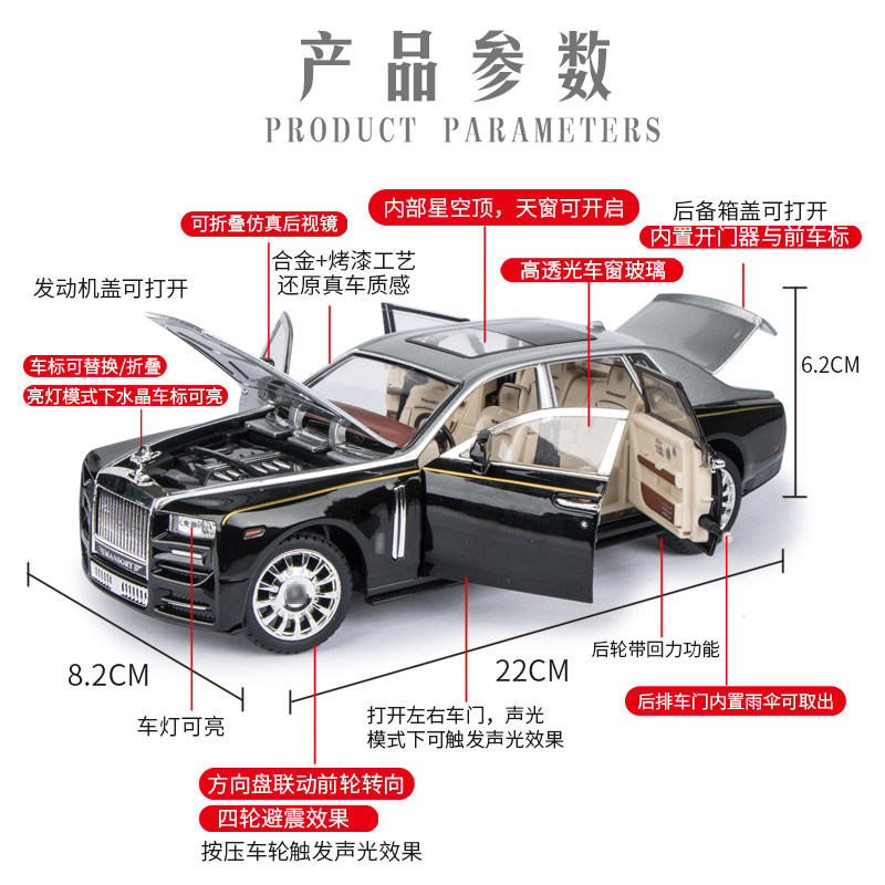 推荐理由:劳斯幻影1:24车模汽车模型合金仿真收藏跑车摆件玩具车莱斯男孩