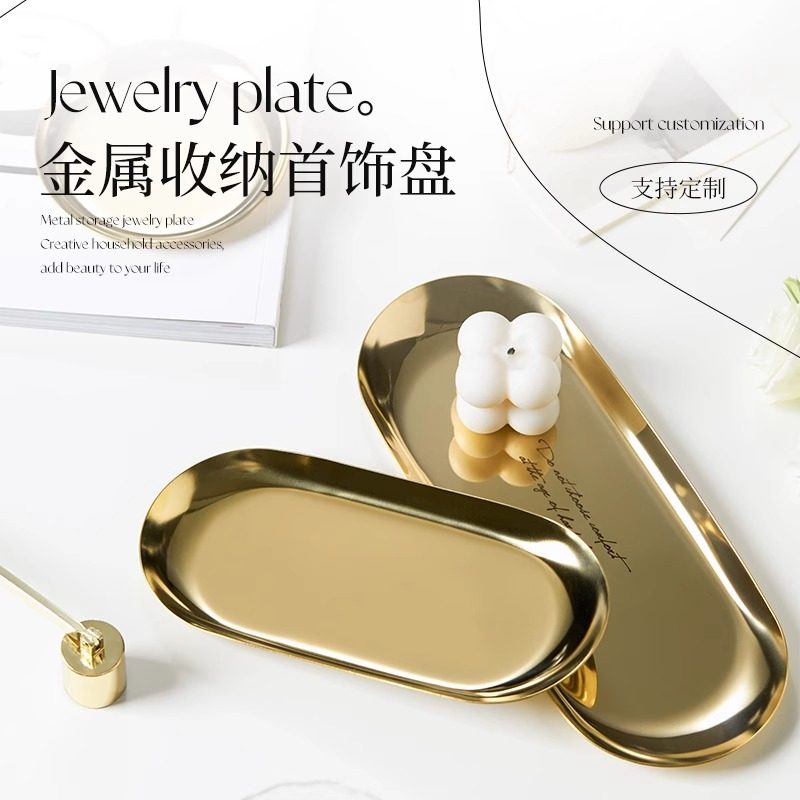 金属不锈钢香薰蜡烛托盘黄铜金色首饰品香氛收纳小托台置物盘摆件