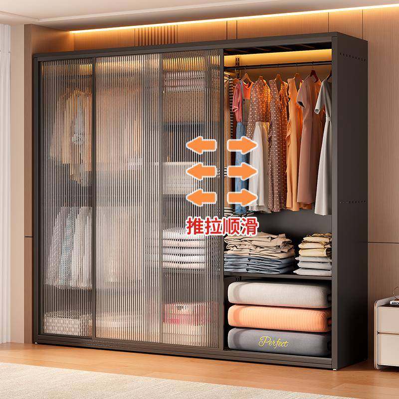 金属衣柜卧室家用置物架挂衣架定制落地玻璃门洞洞板衣帽柜