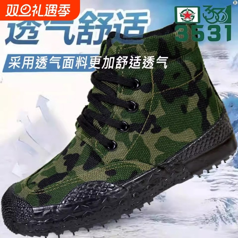 正品3585解放鞋男高帮鞋迷彩作训鞋工地工作劳保鞋防水防滑耐磨