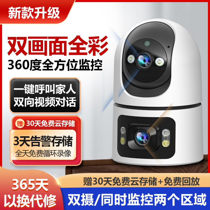 家用无线摄像头室内监控器360度全景带语音AI高清全彩夜视一键呼叫枪球联动摄影手机远程双镜头云台eoolii