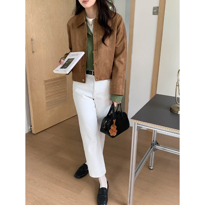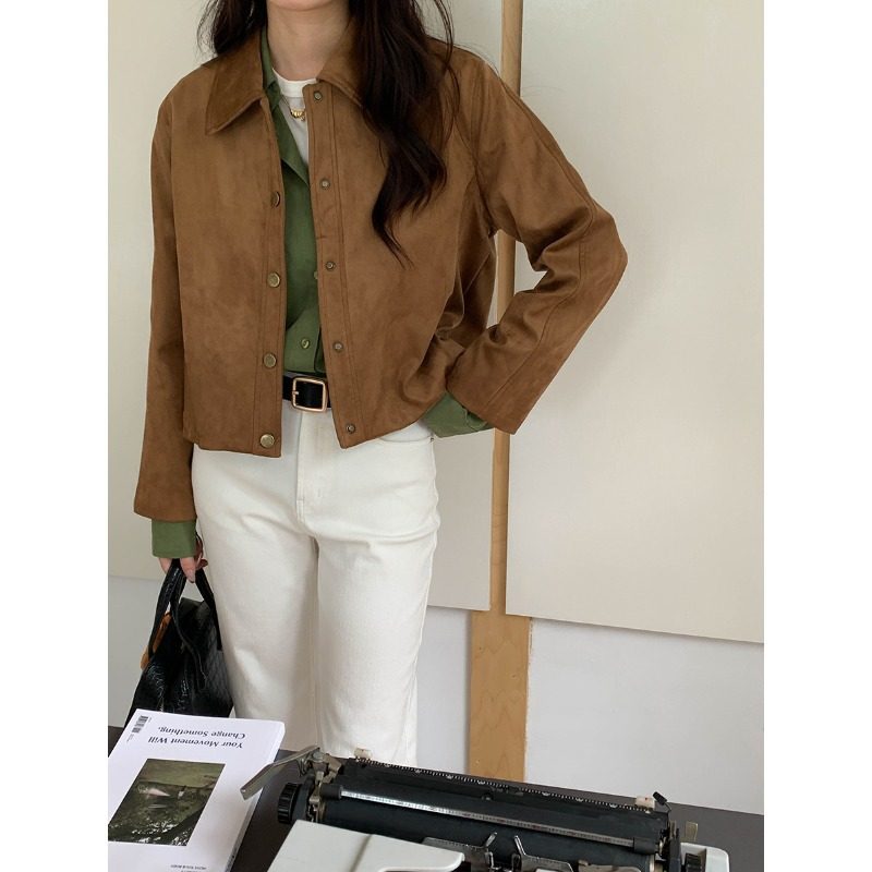 新款 thMorning早秋复古仿麂皮绒翻领显瘦短款外套ZY短外套普通款
