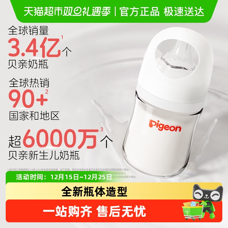 Pigeon贝亲婴儿宽口径玻璃奶瓶新生儿奶瓶0到6个月以上宝宝