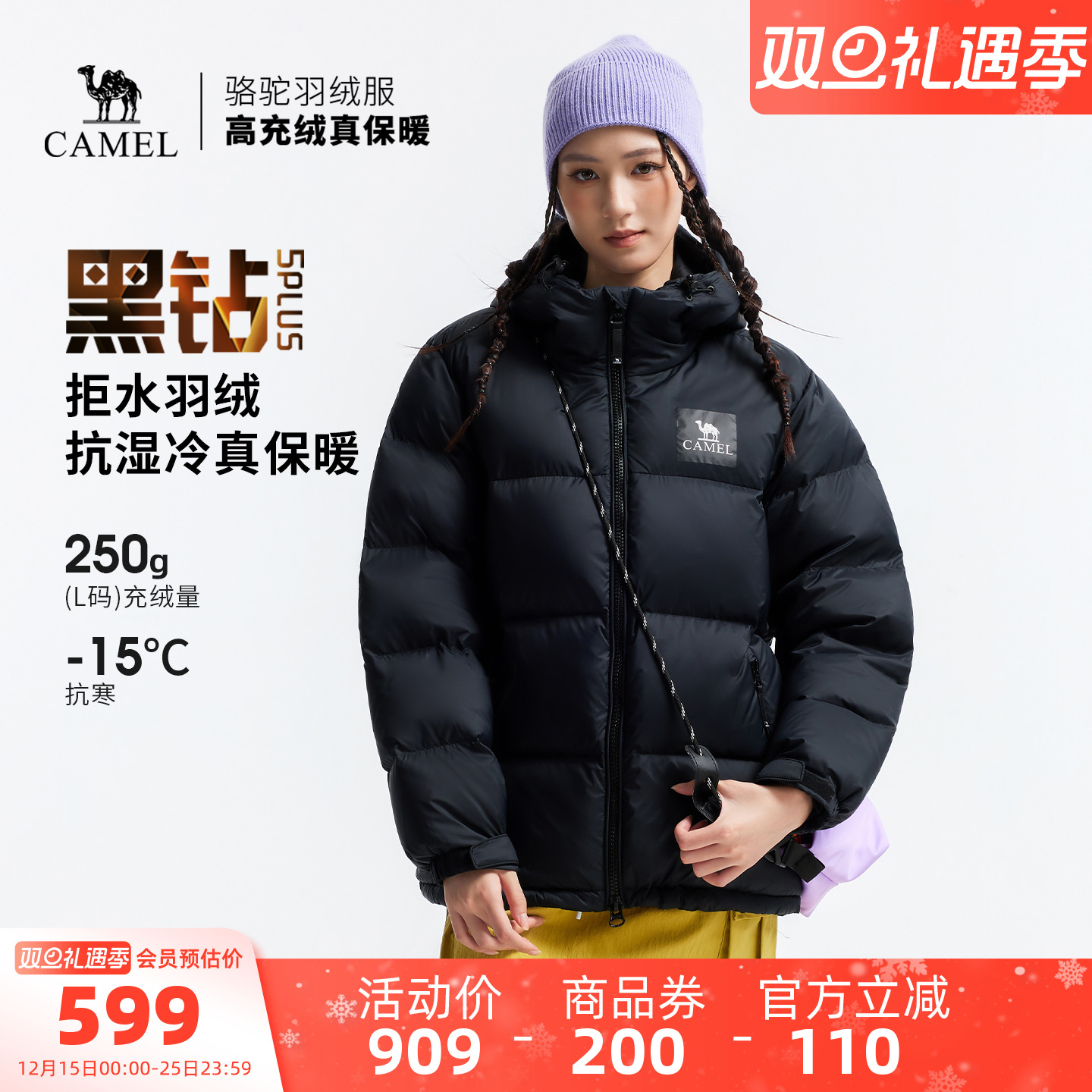 骆驼黑钻5PLUS户外羽绒服冬季新款女款男款加厚保暖拒水绒外套