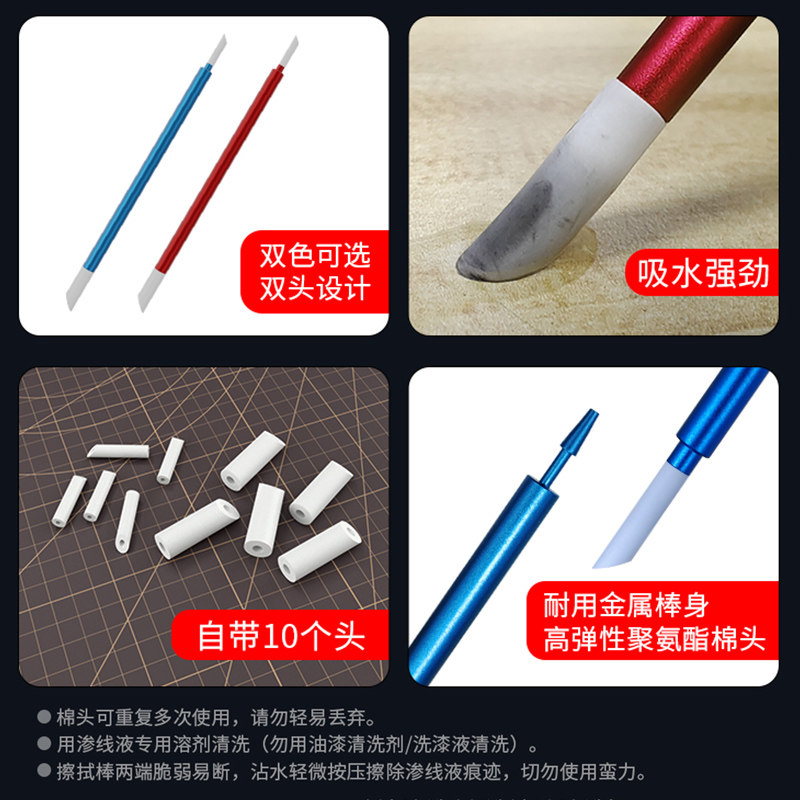 司特力擦拭棒高达渗线擦拭笔旧化渍洗涂装上色双头金属清洁棉棒