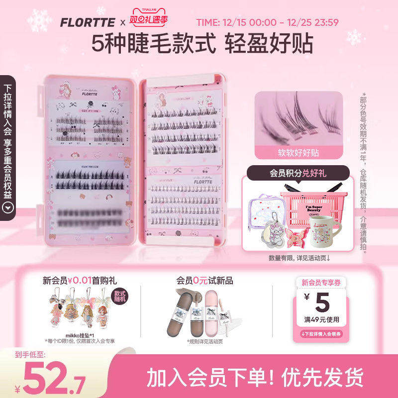 FLORTTE/花洛莉亚MIKKO联名款假睫毛书单簇分段式自然新手懒人装