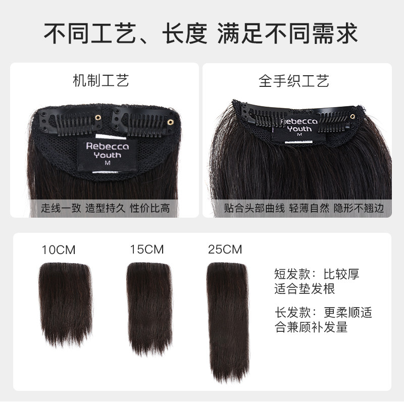 瑞贝卡假发女一片式垫发片全真人发垫发根两侧增厚头顶垫高直发片